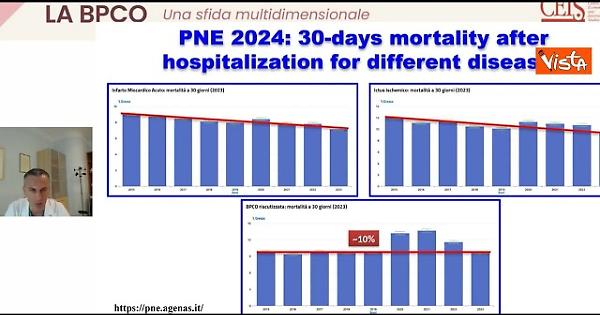 Mentre la mortalità per infarto miocardico e ictus ischemico è notevolmente calata nel tempo quella della BPCO è rimasta stabile intorno al 5%, così Francesco Menzella Direttore UOC di Pneumologia dell’Ospedale “San Valentino” di Montebelluna al webinar La BPCO tra approccio integrato e burden socio-economico.