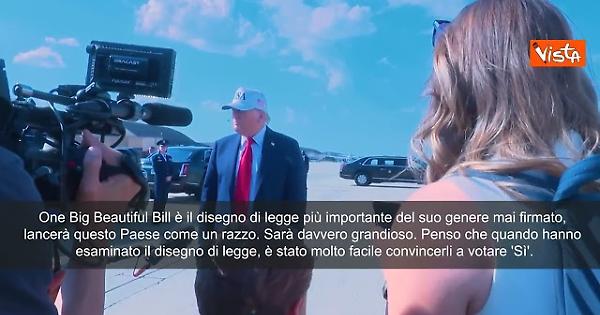 "One Big Beautiful Bill è il disegno di legge più importante del suo genere mai firmato, lancerà questo Paese come un razzo. Sarà davvero grandioso. Penso che quando hanno esaminato il disegno di legge, è stato molto facile convincerli a votare 'Sì'. È il più grande taglio delle tasse della storia, ottimo per la sicurezza, ottimo per il confine meridionale, abbiamo coperto praticamente tutto. Di nuovo, è il disegno di legge più imponente mai firmato nel suo genere", lo ha detto il Presidente Usa Donald Trump parlando con i cronisti prima di salire sull'Air Force One per dirigersi in Iowa.