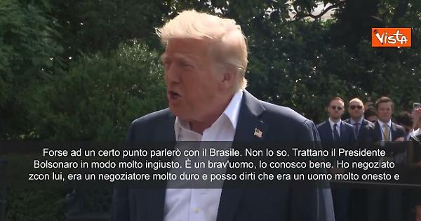 Trump: Dazi del 50% al Brasile? Trattano male Bolsonaro, è un uomo onesto