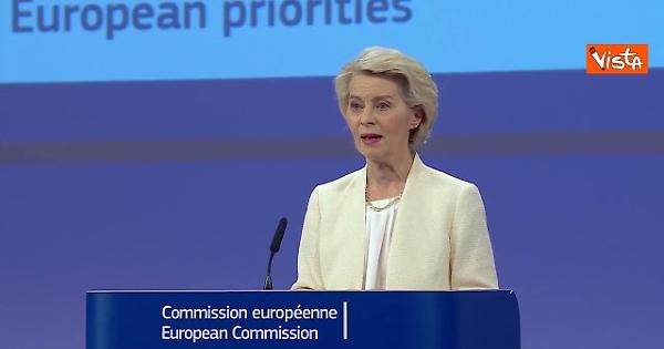 "È un bilancio per una nuova era che corrisponde alle ambizioni dell'Europa, che affronta le sfide dell'Europa. Che rafforza la nostra indipendenza. Si tratta del più ambizioso di sempre, del valore di duemila miliardi di euro", così Ursula von der Leyen presentando il bilancio Ue.