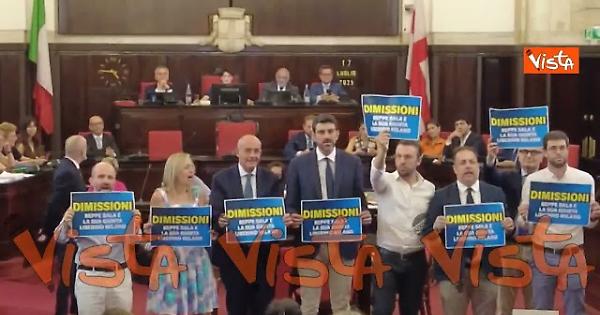 Dopo la richiesta di arresto per l'assessore all'urbanistica del comune di Milano Giancarlo Tancredi e l'apertura delle indagini a carico del sindaco di Milano Giuseppe Sala, si è svolto il consiglio comunale. In questa occasione i consiglieri dell'opposizione hanno chiesto le dimissioni della giunta con cartelli.