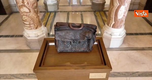 Ecco la borsa di Paolo Borsellino esposta a Montecitorio, quella che aveva con sè il giorno della Strage di Via D'Amelio, il 19 luglio 1992.