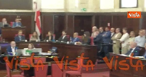 Il sindaco di Milano Giuseppe Sala interviene al consiglio comunale, dopo l'inchiesta sull'urbanistica. Durante il suo discorso I consiglieri dell'opposizione protestano.