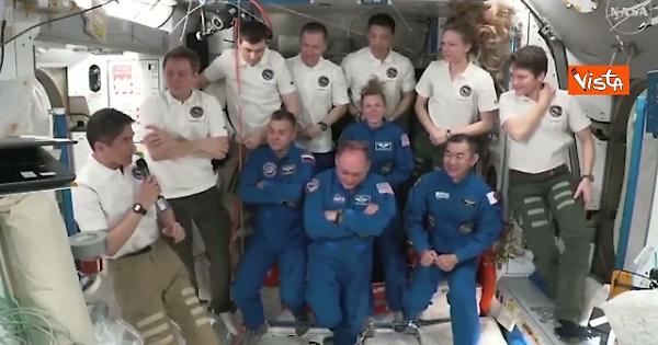 Dopo l'ingresso dei membri dell'Equipaggio-11 nella Stazione Spaziale la cerimonia di benvenuto che segna l'inizio della loro missione a bordo della base orbitale.