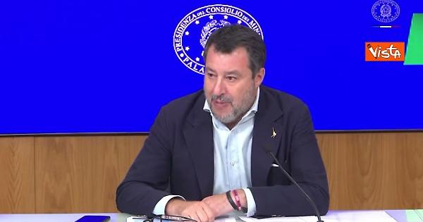 (Agenzia Vista) Roma, 06 agosto 2025 “Lo studio di Open Economics parla di una maggior ricchezza prodotta di 23 miliardi di euro, che non solo ripaga l'investimento dello Stato ma quasi lo raddoppia.” Così il ministro dei trasporti, Matteo Salvini durante la conferenza stampa a Palazzo Chigi a seguito dell'approvazione del CIPESS per l'inizio dei lavori del Ponte sullo Stretto. Fonte: Agenzia Vista / Alexander Jakhnagiev