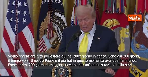 “Voglio ringraziare tutti per essere qui nel 200° giorno in carica. Sono già 200 giorni. Il tempo vola, ma abbiamo un paese che è il paese più hot in questo momento ovunque nel mondo.” Così il Presidente degli stati Uniti Donald Trump in occasione del National Purple Heart Day .