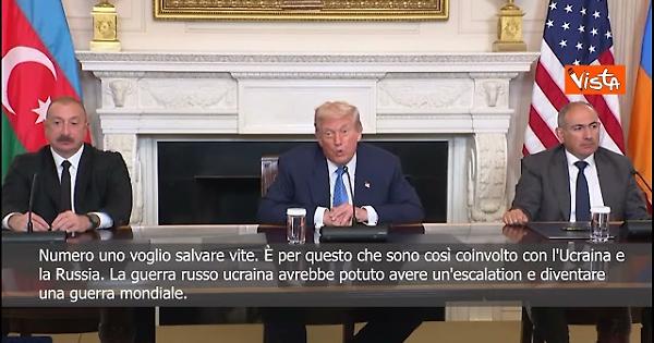 “La guerra russo ucraina avrebbe potuto avere un'escalation e diventare una guerra mondiale. Penso che se non fossimo intervenuti, la guerra tra Ucraina e sarebbe potuta diventare mondiale e io ho fermato tutto questo. .” Così il Presidente degli stati Uniti Donald Trump durante il trilaterale con Armenia e Azerbaijan.