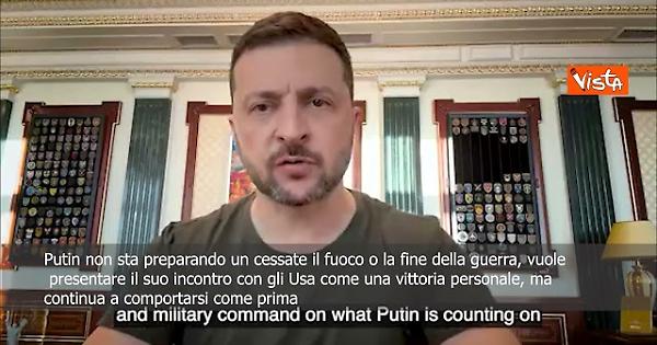 “Putin non sta preparando un cessate il fuoco o la fine della guerra, vuole presentare il suo incontro con gli Usa come una vittoria personale”. Così il Presidente ucraino Volodymyr Zelensky.