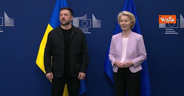 La Presidente della Commissione Europea, Ursula Von der Leyen, accoglie a Bruxelles il presidente Ucraino Volodymyr Zelensky dopo il vertice in Alaska tra il Presidente statunitense Donald Trump e quello russo, Vladimi Putin.