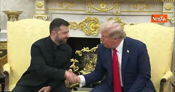 La stretta di mano tra Trump e Zelensky nello studio ovale della Casa Bianca