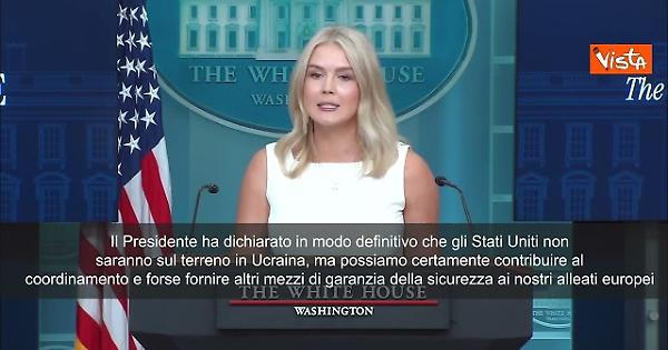 "Il Presidente ha dichiarato in modo definitivo che gli Stati Uniti non saranno sul terreno in Ucraina, ma possiamo certamente contribuire al coordinamento e forse fornire altri mezzi di garanzia della sicurezza ai nostri alleati europei." Lo ha detto la Portavoce della Casa Bianca Karoline Leavitt in conferenza stampa.
