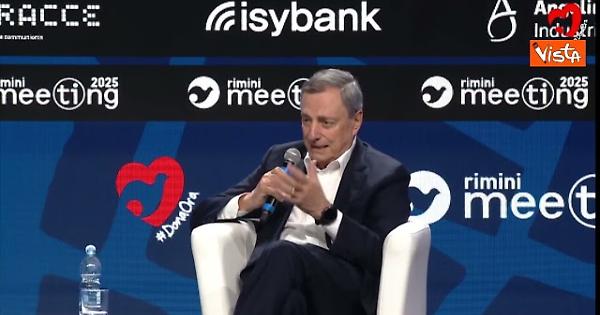 (Agenzia Vista) Rimini, 22 agosto 2025 "Scrissi la mia laurea sostenendo che la moneta unica era una gran sciocchezza... poi quando sono tornato in Italia dagli Usa negli anni Novanta ho visto che le condizioni dell'Europa erano molto cambiate, i paesi erano più vicini e forse valeva la pena di avere una moneta comune. Il mio è un europeismo pragmatico e coi piedi per terra" Così Draghi al Meeting di Rimini. Meeting Rimini Fonte: Agenzia Vista / Alexander Jakhnagiev