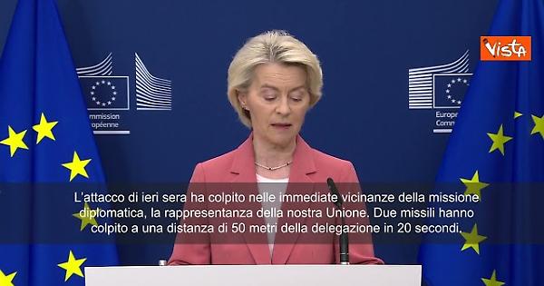 “Si è trattato del più letale attacco con droni e missili contro la capitale da luglio ed è stato un attacco anche alla nostra delegazione. Ho appena parlato con il nostro vice ambasciatore e sono sollevata dal fatto che nessuno del nostro staff è stato ferito. L’attacco di ieri sera ha colpito nelle immediate vicinanze della missione diplomatica, la rappresentanza della nostra Unione. Due missili hanno colpito a una distanza di 50 metri della delegazione in 20 secondi. L’attacco di ieri a Kiev è un altro triste promemoria di ciò che è in gioco. Dimostra che il Cremlino non si fermerà davanti a nulla per terrorizzare l’Ucraina, uccidendo alla cieca civili, uomini, donne e bambini, e prendendo di mira persino l’Ue”, lo ha detto la Presidente della Commissione Ue Ursula von der Leyen.