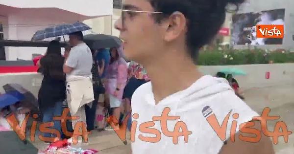 La pioggia la Lido di Venezia non ferma la Mostra del Cinema, i fan i attesa del red carpet aprono gli ombrelli e non si lasciano spaventare da qualche goccia.