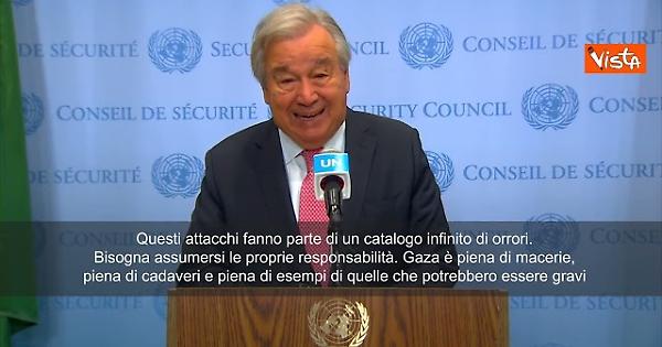 “Abbiamo assistito ad altri attacchi israeliani inaccettabili, incluso quello avvenuto all’inizio di questa settimana all’ospedale Nasser di Khan Younis. Un attacco è stato seguito da un altro, uccidendo civili, tra cui personale medico e giornalisti che stavano svolgendo il loro lavoro essenziale. Il tutto sotto gli occhi del mondo. So che molti dei giornalisti qui presenti, insieme a noi, hanno perso cari colleghi. Questi attacchi fanno parte di un catalogo infinito di orrori. Bisogna assumersi le proprie responsabilità. Gaza è piena di macerie, piena di cadaveri e piena di esempi di quelle che potrebbero essere gravi violazioni del diritto internazionale. Gli ostaggi presi da Hamas e altri gruppi devono essere rilasciati e il trattamento atroce che sono stati costretti a subire deve cessare. I civili devono essere protetti. Diciamolo chiaramente: i livelli di morte e distruzione a Gaza non hanno eguali negli ultimi tempi. La carestia non è più una possibilità incombente: è una catastrofe attuale”. Lo ha dichiarato il segretario generale dell'Onu Antonio Guterres ai giornalisti presso le Nazioni Unite.