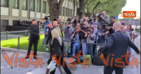Ha aperto la camera ardente dello stilista Giorgio Armani, morto all'età di 91 anni. Le immagini dell'arrivo della stilista Donatella Versace con un mazzo di fiori.