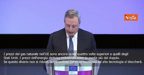 "I prezzi del gas naturale nell'UE sono ancora quasi quattro volte superiori a quelli degli Stati Uniti. I prezzi dell'energia elettrica industriale sono in media più del doppio. Se questo divario non si riduce, la transizione verso un'economia ad alta tecnologia si bloccherà". Così Mario Draghi durante la conferenza stampa della Commissione Europea “Un anno dopo il rapporto Draghi”.