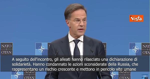 “A seguito dell'incontro, gli alleati hanno rilasciato una forte dichiarazione di solidarietà e determinazione. Hanno condannato le azioni sconsiderate della Russia, che rappresentano un rischio crescente, un errore di calcolo e mettono in pericolo vite umane. Gli alleati hanno ribadito che il nostro impegno comune per la difesa collettiva è incrollabile.” Così il Segretario generale della Nato, Mark Rutte.