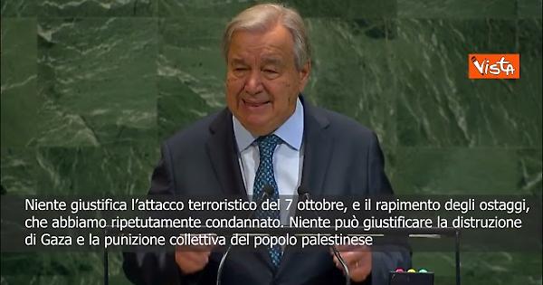 Gaza, Guterres: Serve cessate il fuoco immediato, rilascio ostaggi e soluzione a due Stati