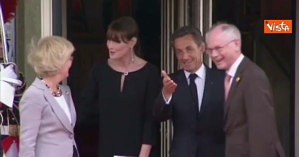 L'ex presidente della Repubblica francese, Nicolas Sarkozy, è stato condannato a cinque anni di carcere per associazione a delinquere nell'ambito dell'inchiesta su finanziamenti di provenienza libica alla sua campagna presidenziale del 2007. È stato invece assolto dalle accuse di corruzione. Eccolo nel 2011 a Deauville per il G8 Francia a fianco della moglie Carla Bruni.