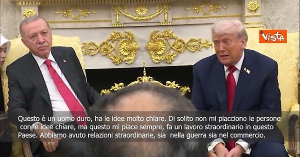 “Erdogan fa un lavoro straordinario in questo Paese, abbiamo avuto relazioni straordinarie, sia affrontando la guerra che affrontando il commercio.” Così il Presidente degli Stati Uniti, Donald Trump, durante l'incontro bilaterale nello studio ovale, con il Presidente turco Recep Tayyip Erdogan.