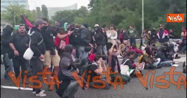 Il corteo pro Gaza di Milano è arrivato sulla Tangenziale Est. Ecco la Polizia che abbassa gli scudi, con i manifestanti che applaudono.
