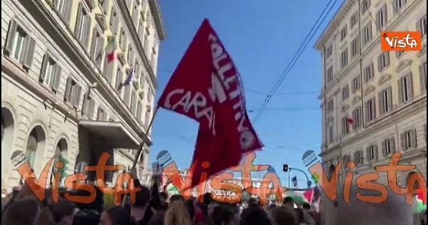 "Stop al genocidio", lo striscione che apre il corteo a pro Gaza a Roma