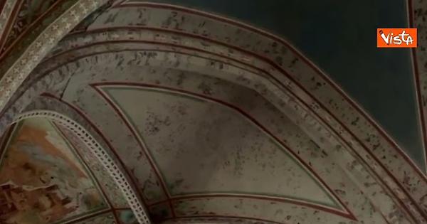 (Agenzia Vista) Assisi, 04 ottobre 2025 Pochi minuti prima dell'inizio della celebrazione in Basilica, in vista delle iniziative che segneranno l’VIII centenario della morte di San Francesco d’Assisi, è stata inaugurata la proiezione a grandezza naturale della vela di San Matteo sulla superficie corrispondente della volta, dove non fu possibile ripristinare l'immagine con i frammenti originali, a seguito del terremoto del 1997. Grazie a questa iniziativa del Ministro della Cultura Alessandro Giuli è stato possibile mostrare quanto vi era raffigurato, considerato che non fu possibile ripristinare l’immagine con i frammenti originali, viste le condizioni e le dimensioni in cui furono recuperati i 120.000 frammenti. Ora la tecnologia - l’intervento è stato reso possibile grazie al Ministero della Cultura - consente di mostrare come era prima del sisma. La proiezione, realizzata attraverso un proiettore 4k, è stata resa possibile grazie ad un rilievo fotogrammetrico terrestre delle superfici affrescate, tramite fotocamere full-frame. È stato generato un modello tridimensionale texturizzato dello stato attuale delle volte oggetto dell’intervento: successivamente, attraverso la ricostruzione geometrica e l’utilizzo delle foto storiche, è stato realizzato un modello tridimensionale della volta antecedente il crollo, così da fornire l’immagine finale coerente con il punto di proiezione, perfettamente integrata con gli affreschi superstiti. Fonte: Agenzia Vista / Alexander Jakhnagiev