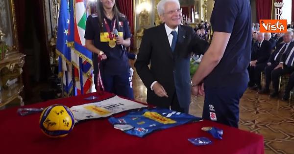 Mattarella riceve Italvolley, per lui in dono medaglie, pallone e magliette autografate