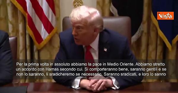 Trump: Per prima volta abbiamo pace in Medio Oriente. Se Hamas romperà la tregua li sradicheremo