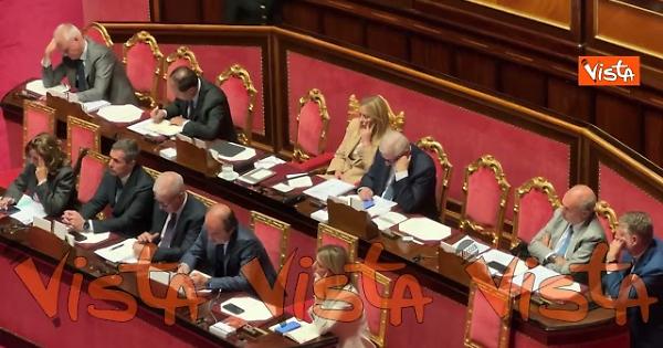 Al termine dell’intervento della Presidente del Consiglio Giorgia Meloni in Aula al Senato breve colloquio con il vicepremier Salvini. Meloni è intervenuta per le comunicazioni in vista del Consiglio europeo a Bruxelles il 23 e il 24 Ottobre 2025.