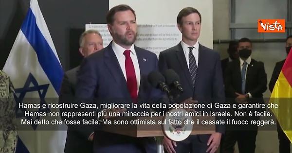 "Sappiamo che Hamas deve rispettare l'accordo, e se non lo rispetta, succederanno cose molto brutte... per dargli una possibilità di successo, dobbiamo essere un po' flessibili. Abbiamo davanti a noi un compito molto, molto arduo, disarmare Hamas e ricostruire Gaza, migliorare la vita della popolazione di Gaza e garantire che Hamas non rappresenti più una minaccia per i nostri amici in Israele. Non è facile. Non ho mai detto che fosse facile. Ma sono ottimista sul fatto che il cessate il fuoco reggerà". Lo ha detto il vice Presidente Usa Jd Vance in Israele.