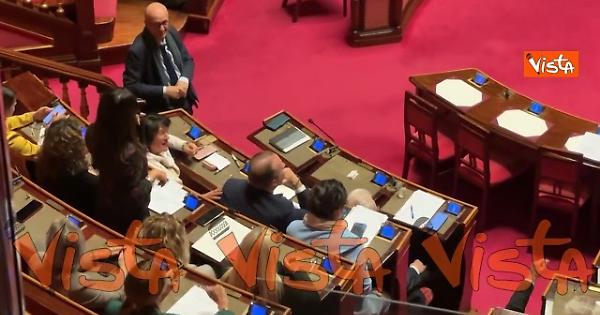 Le immagini dell’Aula del Senato durante la discussione sulle Comunicazioni di Meloni sul prossimo Consiglio europeo.