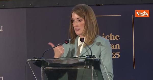 (Agenzia Vista) Roma, 04 novembre 2025 "La scorsa settimana sono stata a Washington e ho incontrato i vertici di Camera e Senato Usa, e in ogni incontro è stata esaltata l'Italia e la leadership della premier Meloni". Così la Presidente del Parlamento europeo, Roberta Metsola, in occasione dell‘European gala 2025 organizzato da Formiche. “Continuiamo ad essere al fianco dell’Ucraina”, assicura. Ebs Fonte: Agenzia Vista / Alexander Jakhnagiev