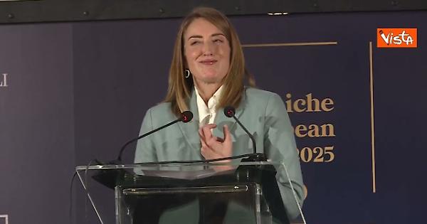 (Agenzia Vista) Roma, 04 novembre 2025 “Il momento che stiamo vivendo non è facile, ci sono molte sfide che noi ogni giorno dobbiamo combattere, ma le combattiamo insieme. Per questo sono qui a Roma per questi due giorni. È una promessa che avevo fatto prima delle elezioni, che noi dobbiamo essere nei territori. Parlerò con gli agricoltori, con i giovani, con i giornalisti, con i cittadini che vogliono da noi un’Europa coraggiosa e con valori che noi non dobbiamo dimenticare mai”. Lo ha detto la presidente del Parlamento europeo, Roberta Metsola, a margine dell’European Gala 2025 organizzato da Formiche. Ebs Fonte: Agenzia Vista / Alexander Jakhnagiev