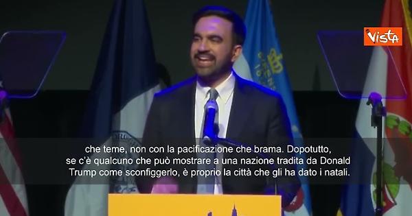 "Insieme daremo inizio ad una generazione di cambiamento. E se abbracciamo questo nuovo corso coraggioso invece di fuggirlo, possiamo rispondere all’oligarchia e all’autoritarismo con la forza che teme, non con la pacificazione che brama. Dopotutto, se c’è qualcuno che può mostrare a una nazione tradita da Donald Trump come sconfiggerlo, è proprio la città che gli ha dato i natali", così Zohran Mamdani, primo sindaco musulmano eletto a New York, nel suo discorso dopo la vittoria.