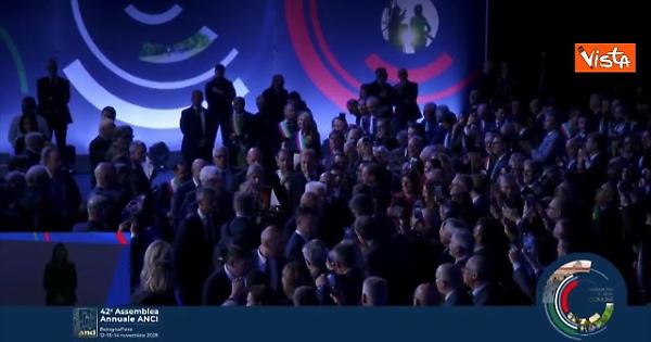 Il Presidente della Repubblica Sergio Mattarella arriva alla 42esima assemblea annuale dell'Anci a Bologna accolto da fragorosi applausi.