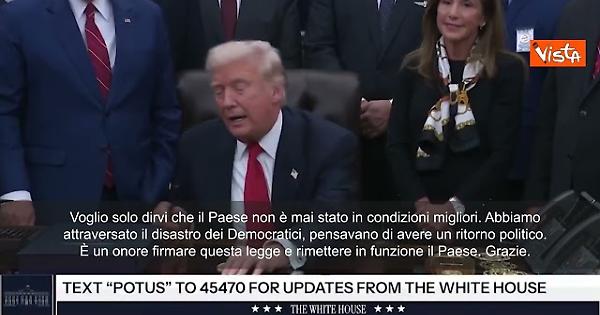 "Voglio solo dirvi che il Paese non è mai stato in condizioni migliori. Abbiamo attraversato questo disastro dei Democratici perché pensavano che sarebbe stato un bene politicamente. È un onore firmare questa legge e rimettere in funzione il Paese. Grazie". Lo ha detto il Presidente Usa Trump firmando la legge che mette fine allo shutdown, il più lungo mai registrato nel Paese.