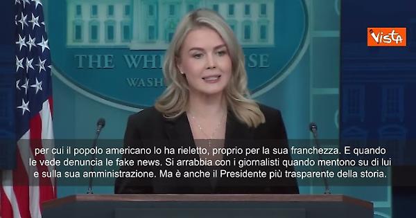 (Agenzia Vista) Usa, 20 novembre 2025 "La stampa dovrebbe apprezzare la franchezza e la disponibilità del Presidente Trump con i media", così la portavoce della Casa Bianca, Karoline Leavitt, rispondendo a una domanda sulla definizione di "piggy" data a Trump a una cronista a bordo dell'Air Force One, dopo una domanda su Epstein. White House Fonte: Agenzia Vista / Alexander Jakhnagiev