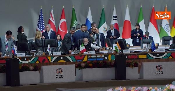 La lunga e calorosa stretta di mano di Giorgia Meloni con il premier indiano Modi a Johannesburg, al vertice G20 del Sudafrica.