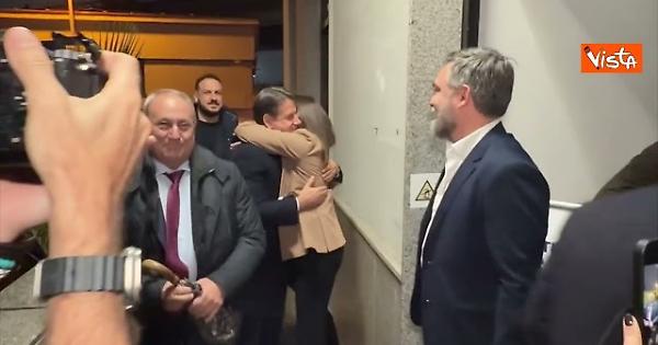 Abbracci per Conte e Fico all'arrivo al comitato elettorale a Napoli. Roberto Fico ha vinto le elezioni regionali battendo Edmondo Cirielli.