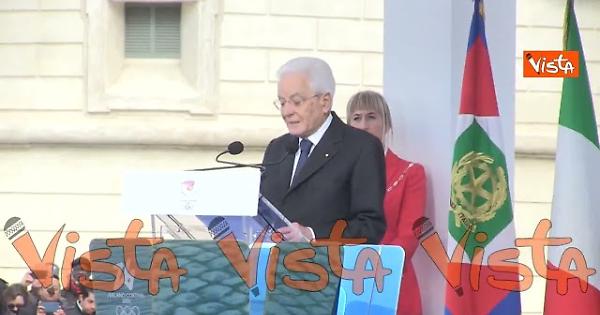 "La condivisione tra Milano e Cortina contiene un messaggio di accoglienza e di apertura. I Giochi porteranno atleti e squadre anche a Bormio, Livigno, Anterselva, Pedrazzo, Tèsero. A sua volta, sarà l’Arena di Verona sede dell’inaugurazione delle Paralimpiadi. Milano e Cortina saranno capofila di un grande impegno italiano. Offriremo come sempre, accoglienza, partecipazione popolare, amicizia a chiunque sarà con noi, e questo contribuirà ai giorni di queste manifestazioni di carattere globale" così il Presidente Mattarella intervenendo alla cerimonia di accensione del braciere olimpico delle Olimpiadi Invernali Milano Cortina.