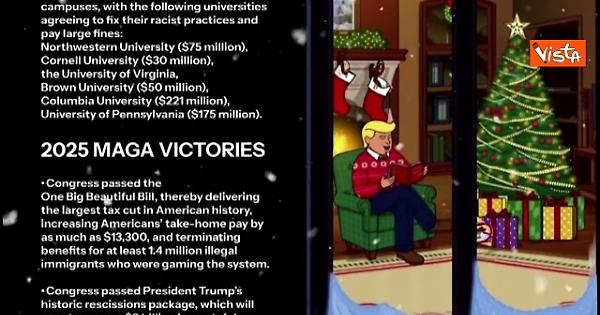 Il video augurale per le festività natalizie della casa Bianca è strutturato come i trend di YouTube, con musica lo-fi in sottofondo, a tema natalizio, e un'immagine sempre uguale di Trump cartoon che legge un libro sotto l'Albero di Natale alla casa Bianca, con un maglione rosso. A fianco a lui scorrono i dati degli obiettivi raggiunti dai "Maga" nel 2025.