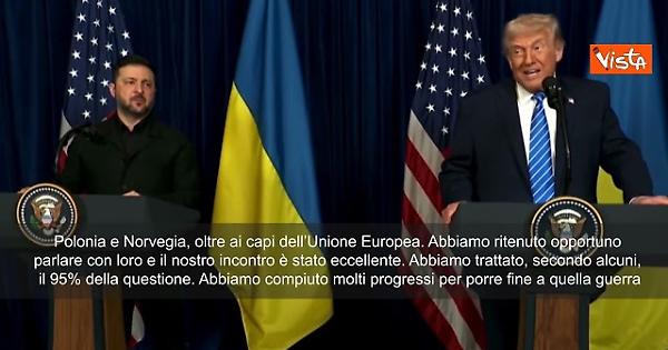 “Un incontro fantastico con Zelensky. Siamo molto vicini a una soluzione. Abbiamo fatto molti progressi verso la fine della guerra. È stato un onore ricevere Zelensky a Mar-a-Lago. Ho parlato con i leader di Regno Unito, Francia, Italia, Germania, Finlandia, Polonia e Norvegia, oltre ai capi dell’Unione Europea. Abbiamo ritenuto opportuno parlare con loro e il nostro incontro è stato eccellente. Abbiamo trattato, secondo alcuni, il 95% della questione. Abbiamo compiuto molti progressi per porre fine a quella guerra”. Lo ha detto Donald Trump nel corso di una dichiarazione insieme al presidente ucraino al termine del loro incontro.