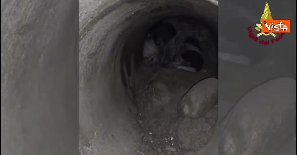 Cagnolina e i suoi due cuccioli bloccati in una tubatura, salvati dai Vigili del fuoco di Cosenza