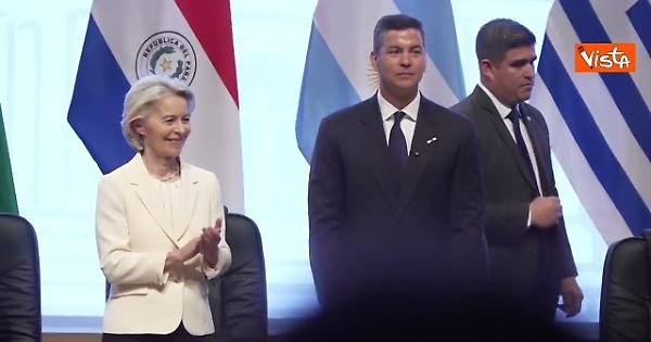 La presidente della Commissione Ue, Ursula von der Leyen, è in Paraguay per la firma dell'accordo commerciale Mercosur tra Ue e Sudamerica.