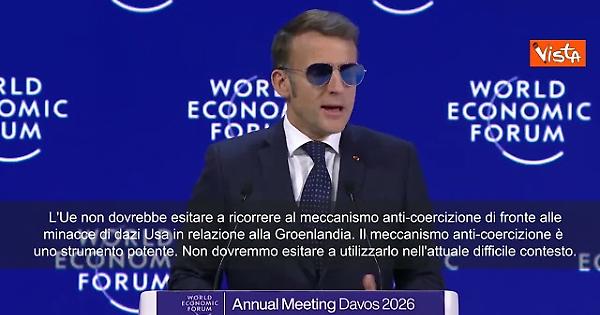 "L'Unione europea non dovrebbe esitare a ricorrere al meccanismo anti-coercizione di fronte alle minacce di dazi Usa in relazione alla Groenlandia. Il meccanismo anti-coercizione è uno strumento potente e non dovremmo esitare a utilizzarlo nell'attuale difficile contesto.", scherza così Macron a Davos, ricevendo un applauso dal pubblico del Wef.