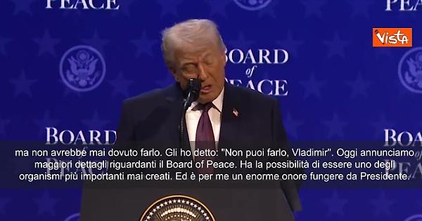"Stiamo lavorando per porre fine agli orribili omicidi in Ucraina, una guerra che non sarebbe mai dovuta accadere e non sarebbe mai avvenuta se fossi presidente. Non sarebbe successo. Parlavo dell’Ucraina con Vladimir Putin ed era la pupilla dei suoi occhi, ma non avrebbe mai dovuto farlo. Gli ho detto: "Non puoi farlo, Vladimir". Oggi annunciamo maggiori dettagli riguardanti il Board of Peace. Ha la possibilità di essere uno degli organismi più importanti mai creati. Ed è per me un enorme onore fungere da presidente". Lo ha detto Trump dopo la firma del board of peace per Gaza a Davos.